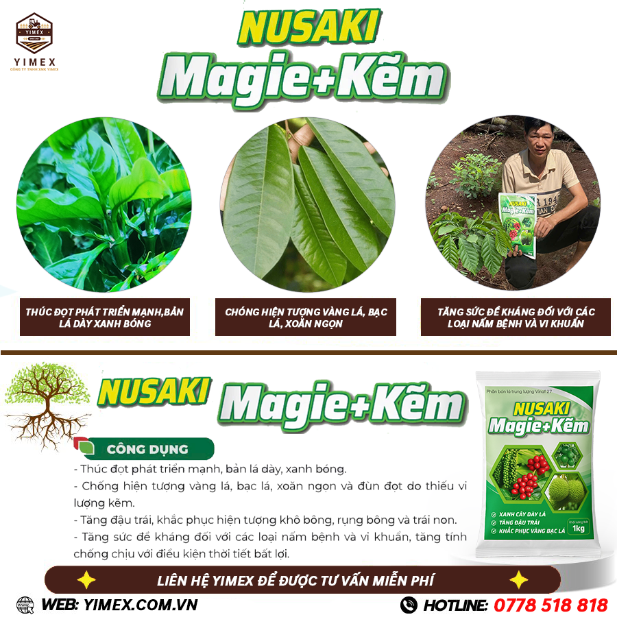 Phân Bón Hữu Cơ NUSAKI Magie Kẽm – Thúc đẩy đọt non phát triển mạnh, làm dày lá, xanh bóng