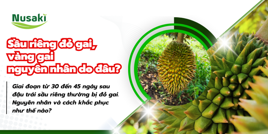 Sầu riêng đỏ gai, vàng gai khi trái cỡ trứng ngỗng, cỡ nắm tay làm trái chậm lớn mà chưa biết các tác hại, nguyên nhân và cách khắc phục như thế nào? Mời bà con tham khảo bài viết sau đây của NUSAKI: