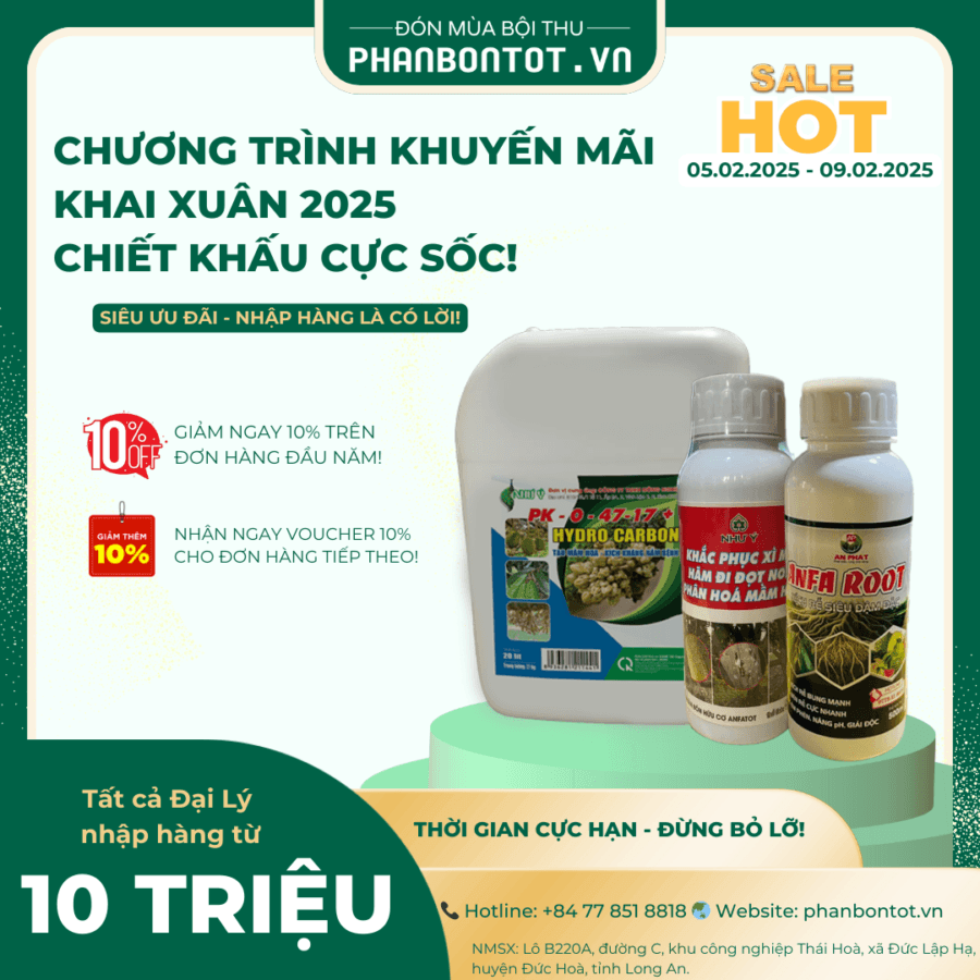 Kính gửi: Quý Đại Lý,Trước tiên, Công ty TNHH ĐT PT Hóa Nông An Phát xin gửi đến Quý Đại Lý lời chúc sức khỏe, thành công và một năm mới Kinh Doanh Phát Đạt – Vạn Sự Như Ý! Nhằm tri ân Quý Đại Lý đã đồng hành cùng chúng tôi, đồng thời giúp Quý Đại Lý tối ưu lợi nhuận ngay từ những ngày đầu năm, Công Ty TNHH ĐT PT Hóa Nông An Phát chính thức triển khai CHƯƠNG TRÌNH KHUYẾN MÃI KHAI XUÂN 2025 với ưu đãi KHỦNG – DUY NHẤT TRONG 5 NGÀY! ⏳ THỜI ...